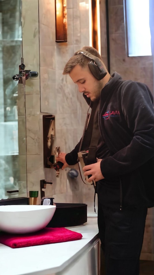 Firmamız su tesisatçılığı ile ilgili teknolojik yenilikleri yakından takip etmektedir. Lazerli Termal Kamera, Akustik Ses Dinleme ve Elektromanyetik Dedektör cihazlarıyla kırmadan, dökmeden arızayı tespit ediyoruz.